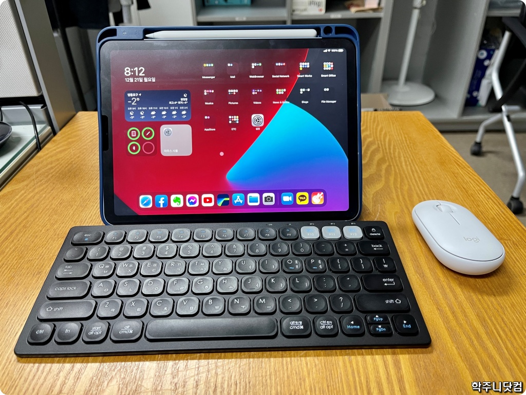 위의 모습이 내가 에어 4를 사용할 떄의 모습이다. 블루투스 키보드와 마우스를 연결해서 쓰는데 이렇게 쓰면 노트북을 쓰는 것과 비스므리하게 사용할 수 있다. 뭐 비슷한 사용 경험을 제공해준다.