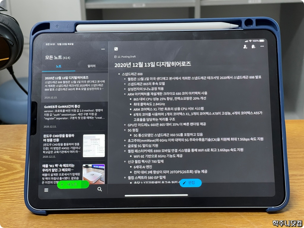 그 전부터 아이패드를 사용하고 있었으며 아이패드 프로 3세대 12.9인치 모델을 사용해봤던 경험으로 어떤 의미에서 내가 사용하기에 딱 좋은 스팩이라는 생각이 들었기 때문이다.