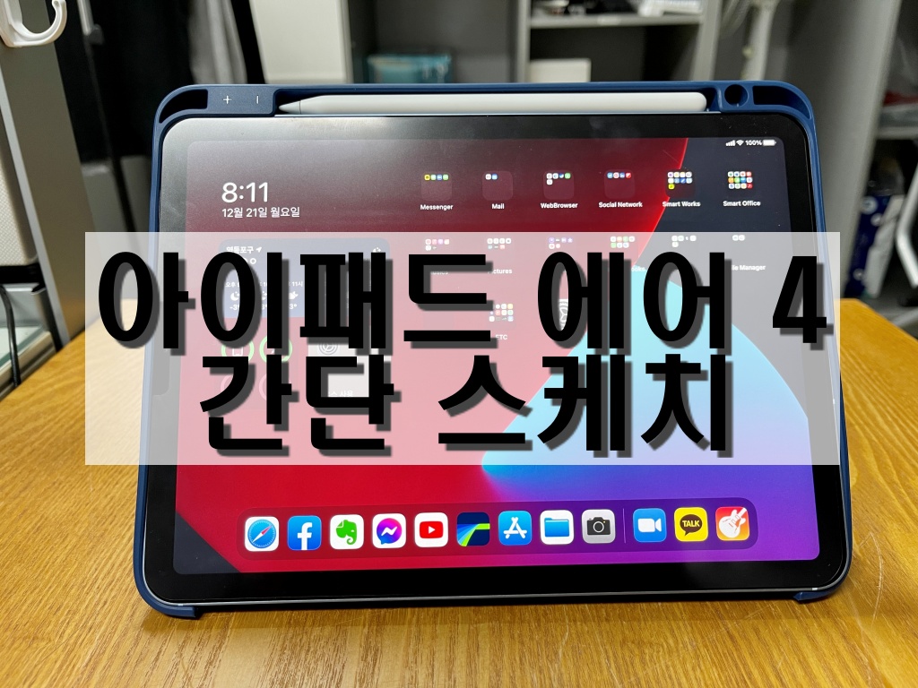 내 경우 예전에 아이패드 프로 3세대 12.9인치 모델을 썼을 떄도 그랬지만 에어 4를 거의 노트북 비스므리하게 사용한다. 그렇기 때문에 아래와 같은 모습으로 많이 사용한다.