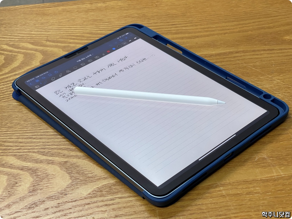 또 필기감을 위해 종이질감 필름도 구매해서 붙이기도 했다. 또 제대로 이용해보기 위해서 굿노트도 유료 버전을 구입해서 사용하고 있다. 보통은 PDF 파일 내용에 필기하는데 많이 쓰곤 위와 같이 그냥 필기를 할 때도 쓰곤 한다. 문제는 내 필체가 워낙 악필인지라 손글씨 연습을 좀 해야 할 듯 싶기도 하다.