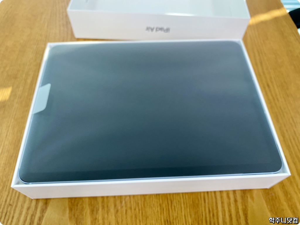 내가 구입한 에어 4는 스카이블루 색상의 LTE 모델로 256GB 용량을 지닌 제품이다. 물론 박스에서는 크기와 색상만 확인이 가능한데 에어 4는 크기는 하나 뿐이니까 색상만 체크하면 될 듯 싶다.