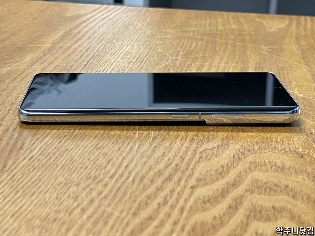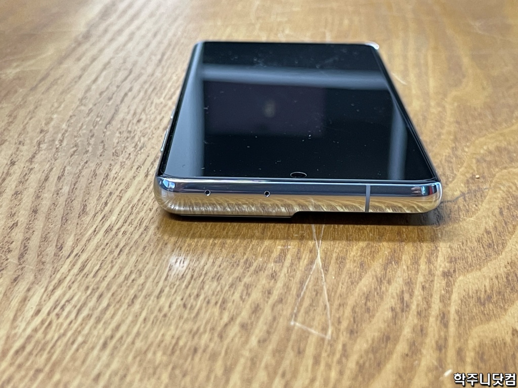 전면 기준 오른쪽 면의 모습인데 카메라 부분으로 인해 윗 부분이 좀 올라와있다. 뭐 이건 카툭튀 디자인의 모든 스마트폰들의 공통적인 모습이니 넘어가자.