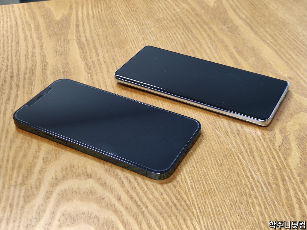 뭐 삼성에서 마케팅으로 진행하는 리뷰라면 당연히 안되는 부분이지만 이건 내가 그냥 빌려서 하는 리뷰이기 때문에 그냥 한번 내가 지금 사용하고 있는 아이폰12프로맥스와 디자인 비교만 해보려고 한다.
