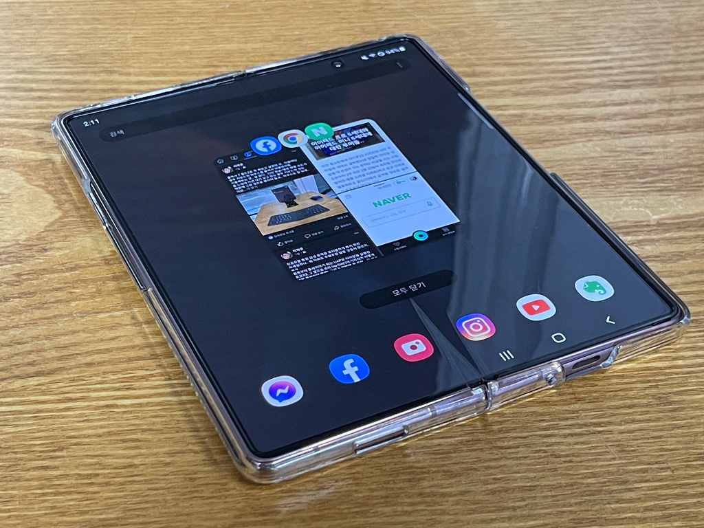 아무래도 폴드2의 핵심은 폴더블 디스플레이인 메인 디스플레이가 아니겠는가. 7.6인치의 대형(?) 화면을 이용해서 어떤 앱들을 실행해서 쓰는지 간단히 살펴봤다. 참고로 메인 디스플레이에서 쓰는 앱이나 커버 디스플레이에서 쓰는 앱이나 동일하다. 단지 화면 비율이 다를 뿐이다.