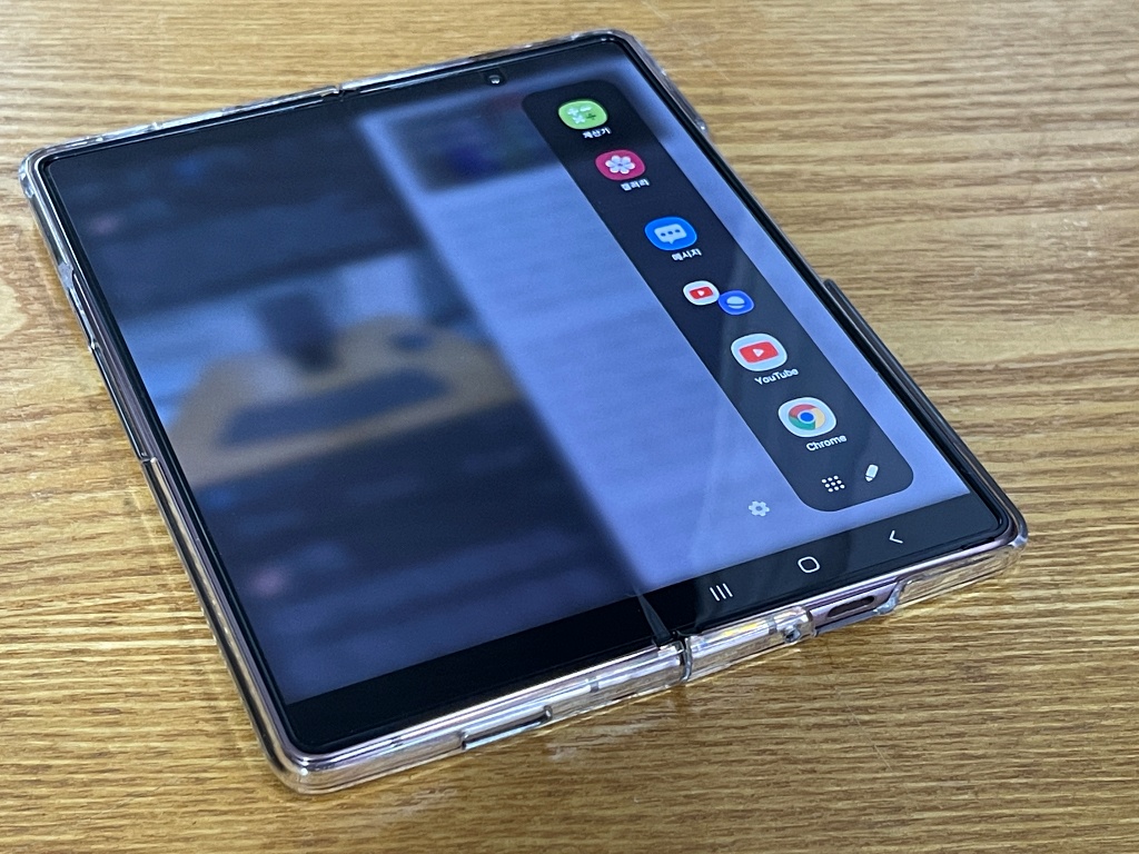 접히는 부분의 주름이 보이는 것이 눈에 거슬릴 수는 있겠지만 정면으로 바로 보면 해당 주름은 거의 보이지 않았다. 다만 메인 디스플레이의 경우 액정이 강화유리 등으로 덮힌 것이 아닌 필름으로 덮혀있기 때문에 손톱 등 뾰족한 부분으로 세게 누르면 찍히겠다는 생각이 들었다. 그 부분은 좀 많이 거슬리는 부분이었다.