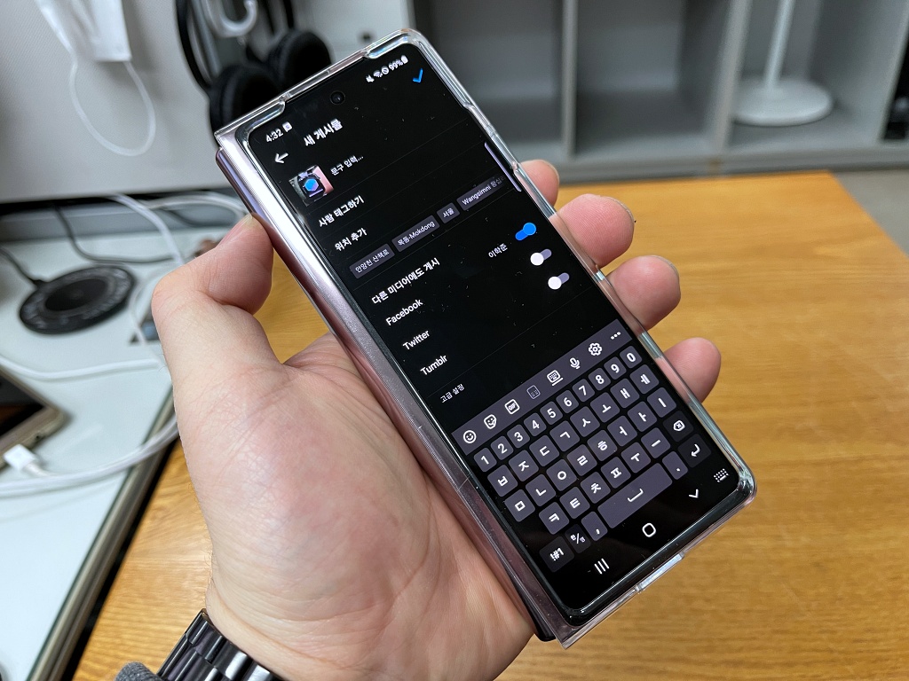 그 덕분인지 많은 작업들을 메인 디스플레이인 폴더블 디스플레이가 아닌 커버 디스플레이에서 처리가 가능하다. 내 경우 3일정도 계속 썼을 때 일부러 메인 디스플레이를 많이 쓰려고 의식적으로 노력했지만 전체 사용 비율을 볼 때 거의 5:5 비율로 커버 디스플레이를 이용하게 되었다.