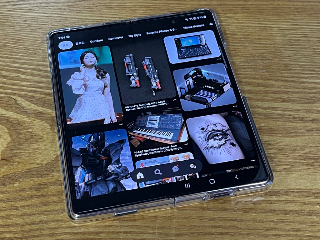 앞서 사진 앱에서도 얘기헀지만 사진은 큰 화면으로 보는 것이 다 시원시원한 느낌이 들어서 좋다. 그런 의미에서 핀터레스트 앱도 커버 디스플레이보다는 메인 디스플레이에서 보는 것이 내 경우에는 상대적으로 더 좋았다.