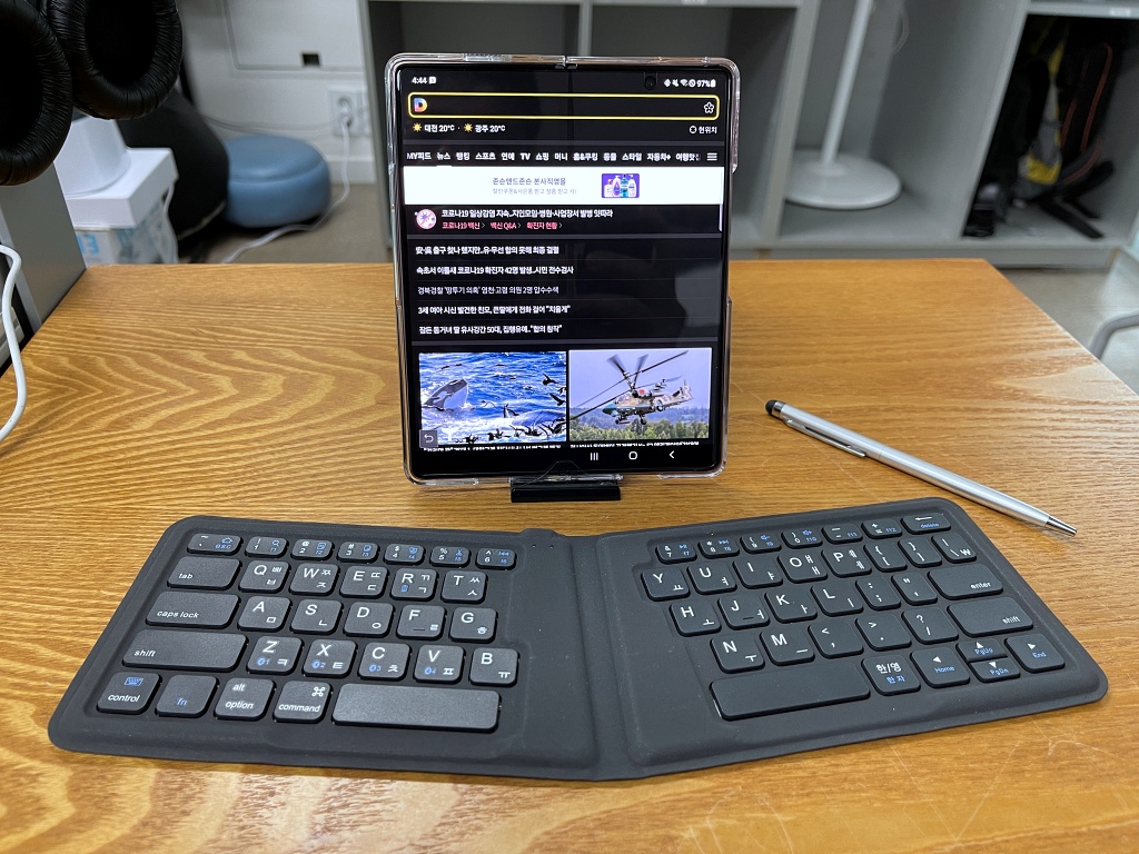 하지만 내 경우에는 위의 사진처럼 별도의 블루투스 키보드와 블루투스 마우스를 폴드2에 연결해서 쓴다. 그렇게 쓰면 정말 태블릿을 쓰는 것처럼 폴드2를 쓸 수 있다.