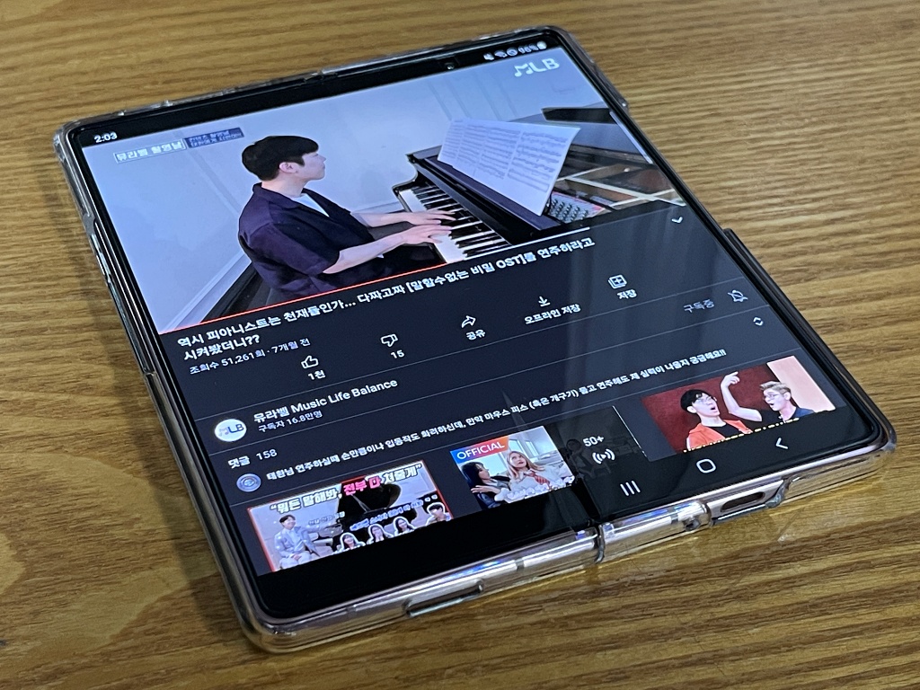앞서 커버 디스플레이로 유튜브 영상을 보는 것을 보여줬는데 역시나 유튜브와 같은 동영상 어플리케이션은 크고 넓은 화면에서 봐야 제맛이다. 그런 의미에서 유튜브는 메인 디스플레이로 보는 것이 더 좋다(당연한 얘기지만).