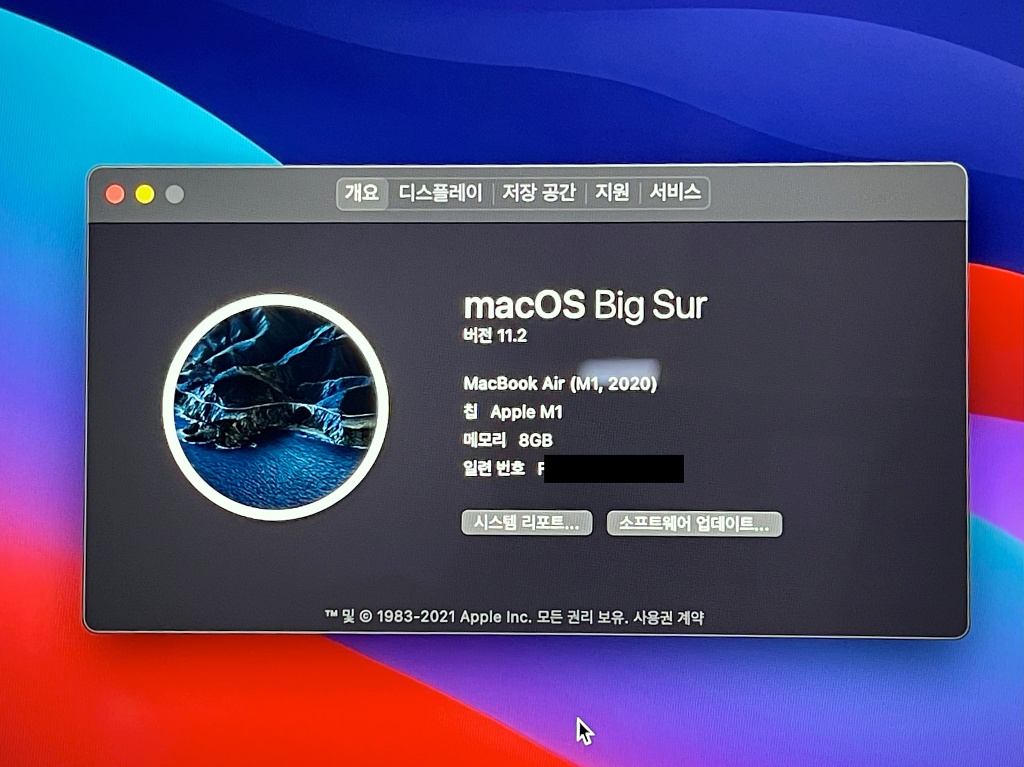 저 사진을 찍을 시점(솔직히 얼추 한달 전에 글을 쓰겠다고 사진을 찍어뒀는데 그동안 바뻐서 못쓰고 이제야 쓴다)에서는 macOS 11.2를 사용하고 있었는데 이 글을 쓰는 시점에서는 최근에 OS 업그레이드가 진행되어 macOS 11.3이 되었다.