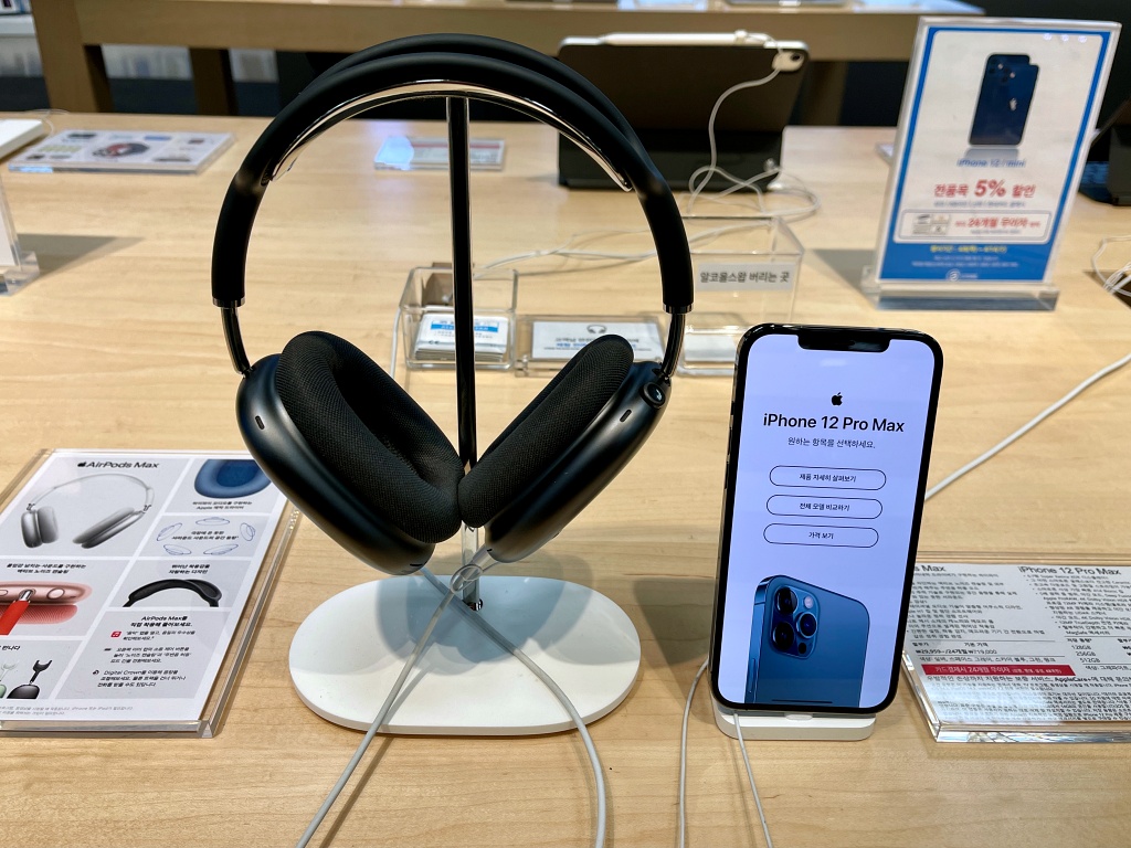 신사동 애플스토어나 여의도 애플스토어에 가서 청음을 해보려고 헀는데 문제는 코로나19 팬더믹으로 인해 예약 후 방문해야 하며 에어팟 맥스 청음을 위한 예약은 안받는다는 얘기가 있어서(실제로 가봤는데 들어갈 수 없었다) 애플 스토어는 포기했다. 그리고 프리스비나 A#과 같은 프리미엄 리셀러 매장에 갔을 때에는 에어팟 맥스가 전시되어 있지 않았다.