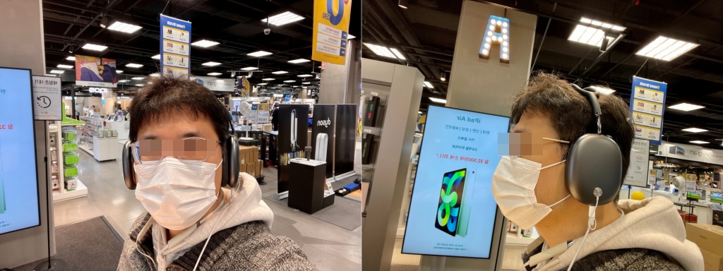 에어팟 프로를 쓰고 있고 에어팟 프로의 노이즈 캔슬링 성능도 최상에 가까웠는데 에어팟 맥스는 그보다 더 좋다는 느낌이 들어서 말이지. 애플 매장 주변이 무척이나 시끄러웠는데 노이즈 캔슬링을 켰을 때 주변이 싹 조용해지는 느낌이 너무 좋았다. 음악을 들었을 때도 주변 소음이 안들이니 더 집중해서 들을 수 있었던 것 같고 말이지.