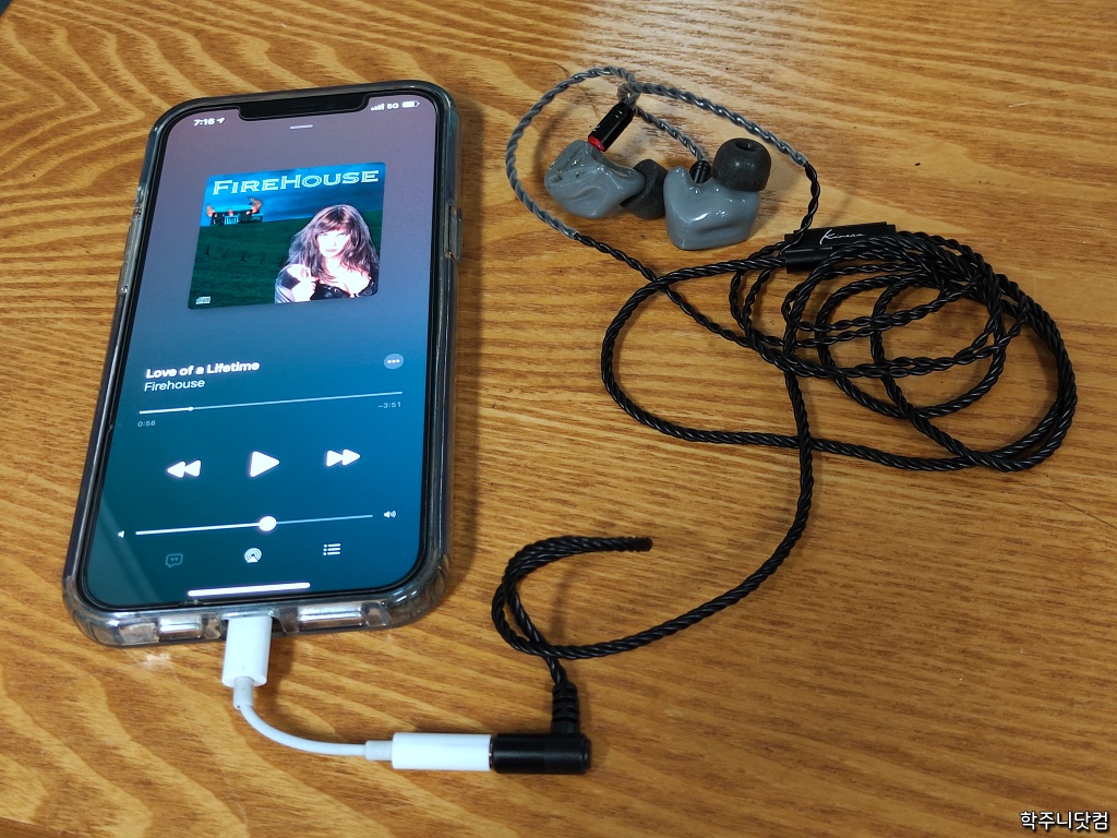 위의 사진은 내가 갖고 있는 USB-C 타입의 일명 꼬다리 DAC(어디 제품인지는 잘 모름 -.-)를 라이트닝 to USB-C 젠더에 연결해서 유선 이어폰으로 연결한 모습이다.