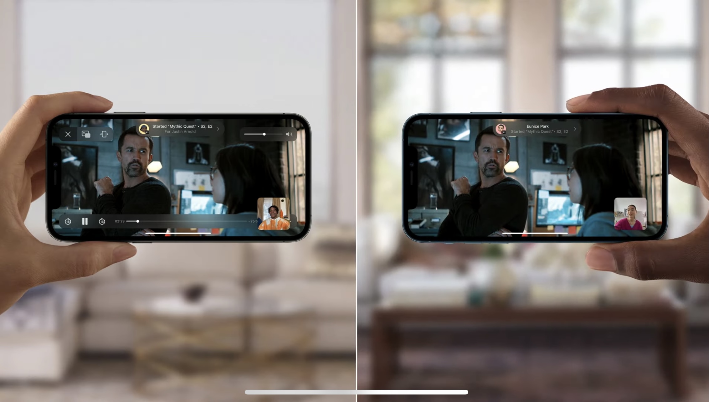 애플TV에서도 iOS 15, iPadOS 15, macOS Monterey와 같이 페이스타임의 세어플레이를 사용할 수 있다. 예를 들어, 아이폰에서 세어플레이를 통해서 공유받은 컨텐츠를 애플TV 앱에서도 같이 보이게 해서 시청이 가능하다는 얘기다.