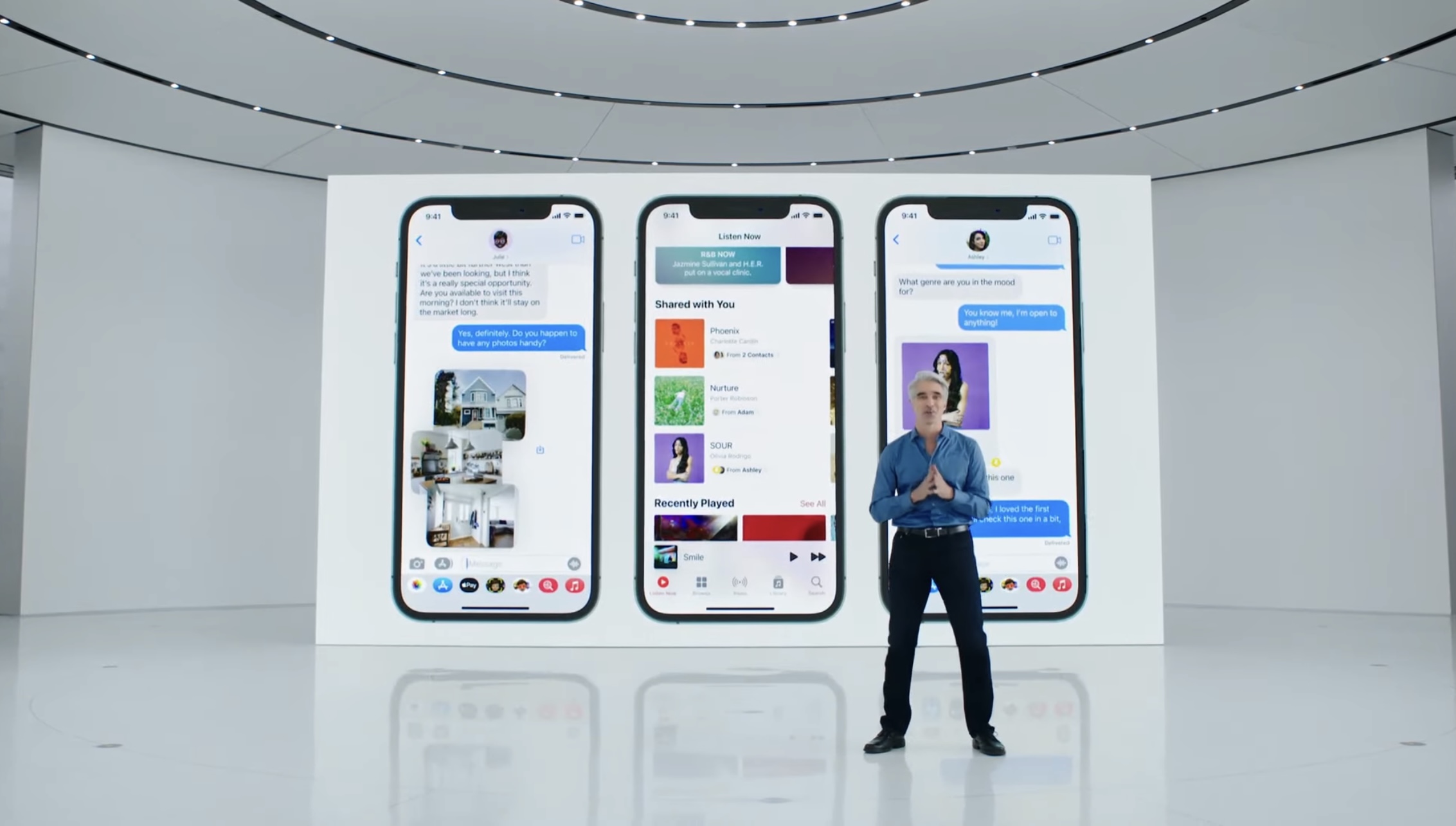 페이스타임만 강조된 것이 아니다. 메시지 앱에도 많은 변경이 있다. 앞서 세어플레이 기능에 대해서 언급을 했는데 메시지에도 비슷한 공유 기능이 추가되었다. 아이폰에 저장된 사진이나 영상을 공유할 수 있는 기능이다.