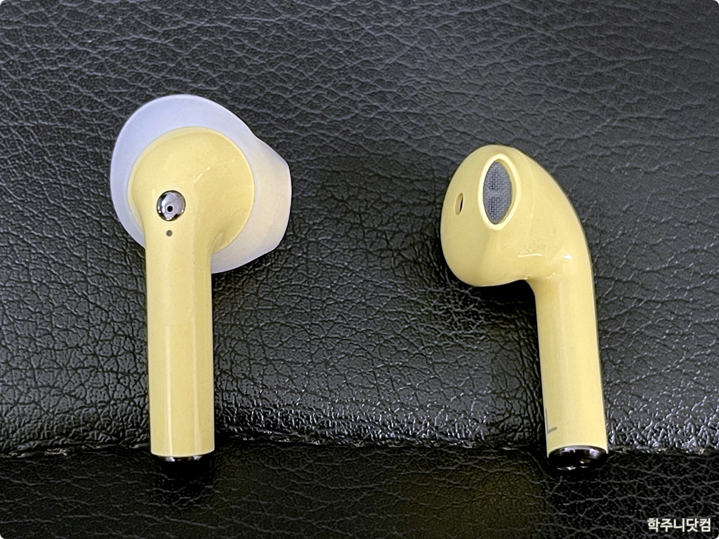 니오 레몬의 이어버드 디자인을 보면 뭐 전에 니오를 언급했을 때도 말했듯 정말로 에어팟 2세대가 생각난다. 참고로 에어팟 2세대보다는 저 콩나물 줄기 부분(?)이 조금 더 짧다.