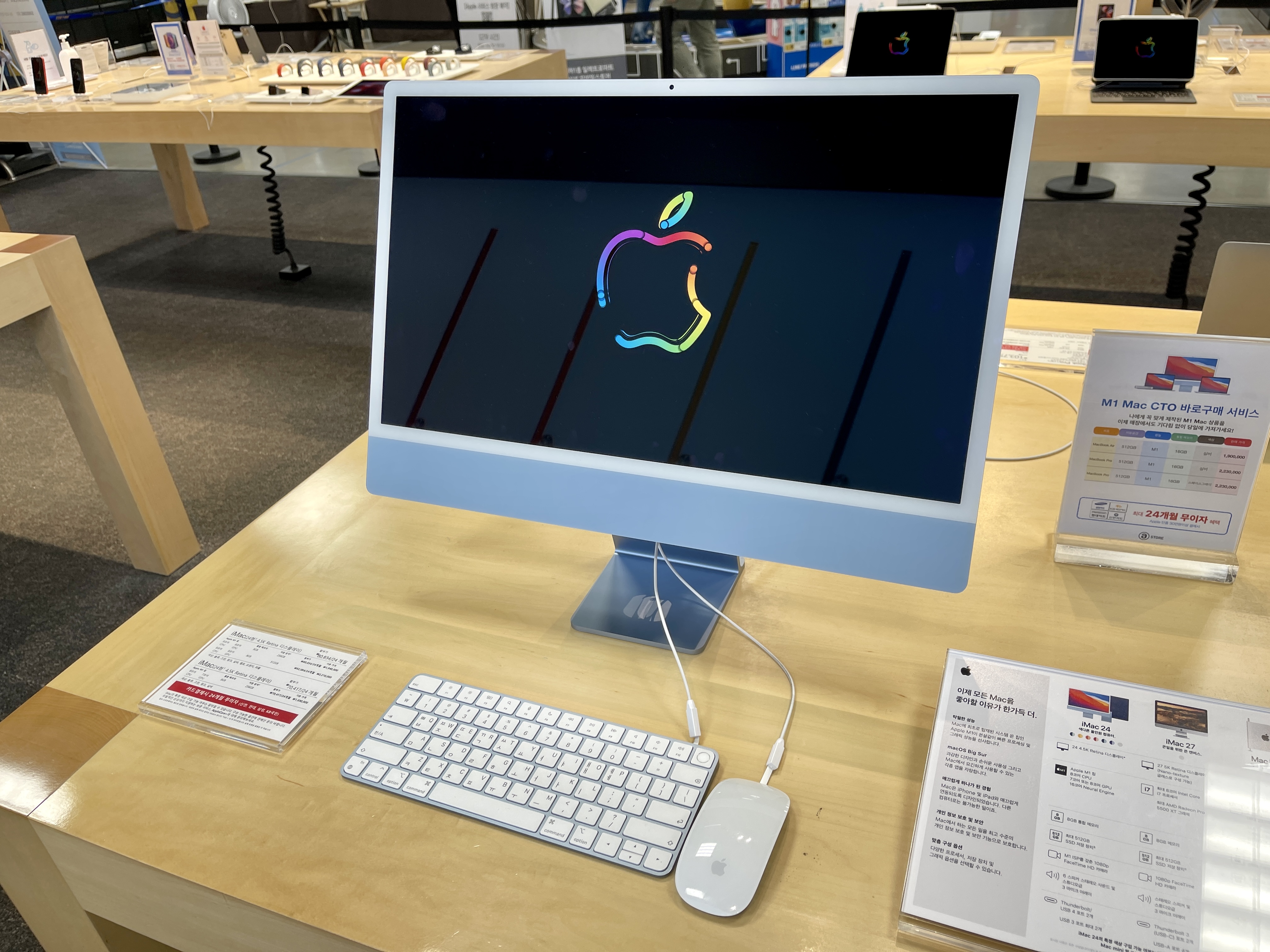 참고로 며칠 전까지 이 아이맥 M1 버전 모델은 가로수길, 아니면 여의도의 애플스토어에서만 볼 수 있었는데 이제는 A#이나 프레스비같은 프리미엄 리셀러 매장에서도 볼 수 있는 듯 싶다. 내 경우 영등포 일렉트로마트의 애플 매장에서 이 녀석을 볼 수 있었다.