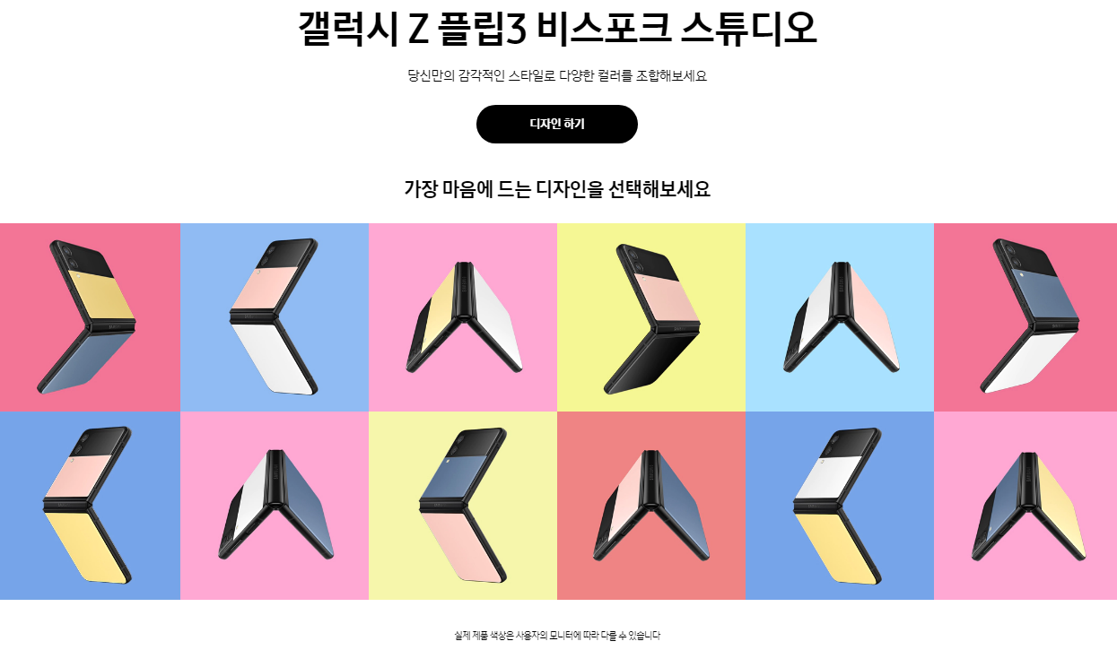 주문생산방식이기 때문에 대리점 등에서 구매할 수 있는 것은 아니고 삼성닷컴의 갤럭시 Z 플립3 비스포트 스튜디오를 통해서 선택 및 주문이 가능하다고 한다.
