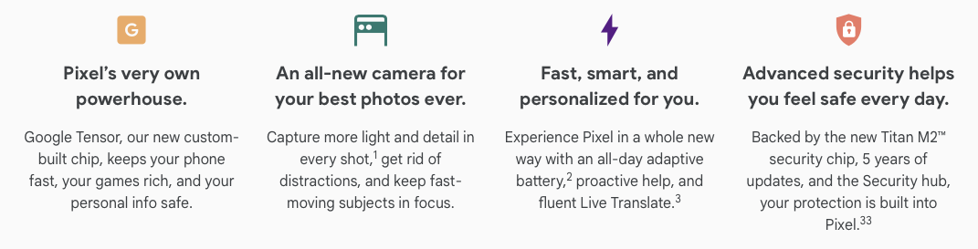 이번 픽셀 6 시리즈의 핵심은 아래의 4개로 정리를 할 수가 있다.
