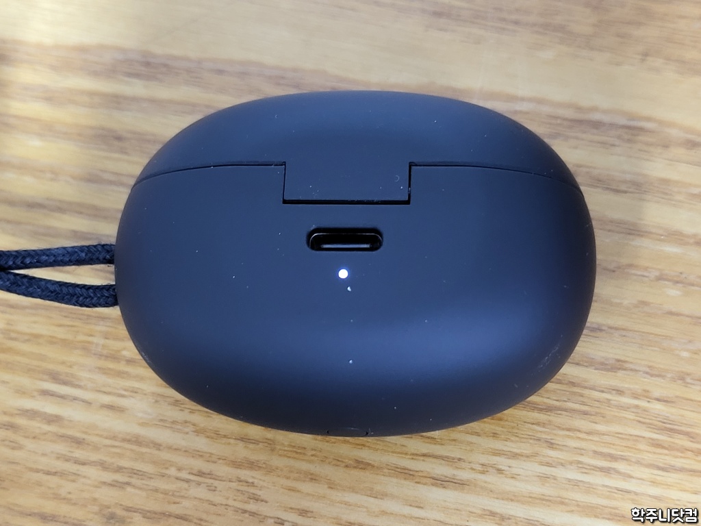 앞서 언급했듯 T2 충전 케이스는 USB-C 포트를 통해서 충전한다(참고로 Tolv 충전 케이스는 micro USB 타입이었다). 포트 밑에 LED가 있는데 LED의 색상에 따라서 현재 충전 케이스에 어마만큼의 배터리가 있는지 알려준다. 저 색상이 붉은 색이면 충전 케이스의 배터리 용량이 적은 것이니 케이블을 통해서 충전을 해야 한다.