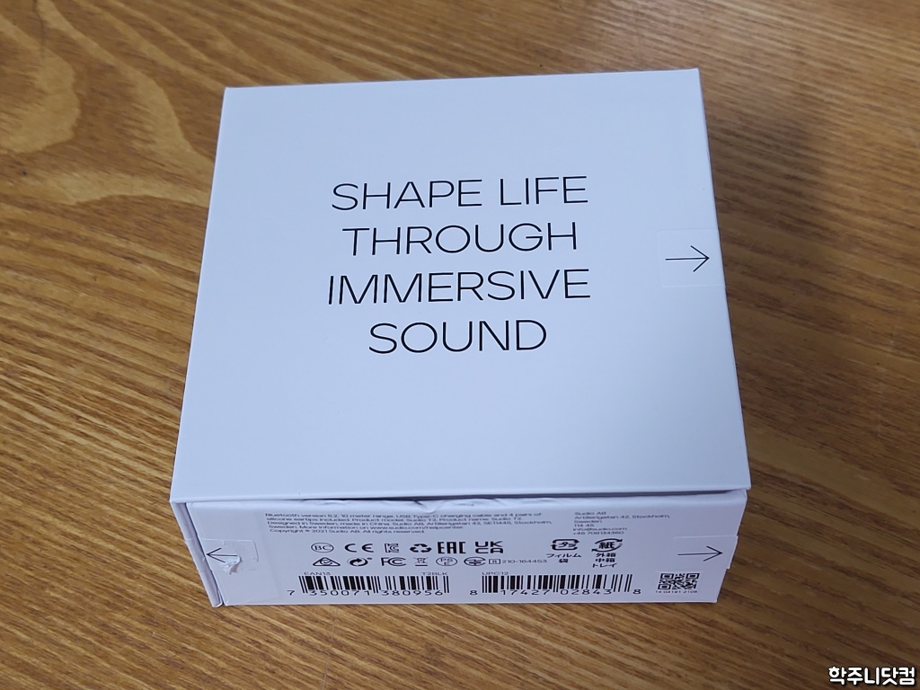 속 박스에 적혀있는 Shape life through immersive sound라는 문구는 수디오 제품 전체에 적용되는 문구로 공간감있는 사운드를 통해서 삶을 만들어 나간다는 뜻인데 그만큼 사운드에 자신이 있다는 것을 알려주는 것 같다.