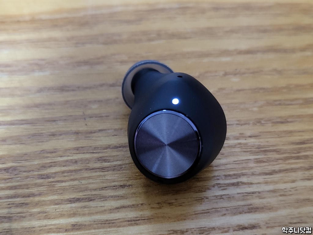 LED를 통해서 이어버드의 충전 상태를 확인할 수 있으며 마이크 구멍이 있는데 이건 외부 사운드 수음용 마이크다. T2는 수디오 제품들 중 TWS 모델들 중에서 처음으로 ANC 기능을 제공하는데 이 마이크를 통해서 외부 사운드를 수음해서 ANC 기능을 구현한다고 보면 된다. 통화할 때에도 자기의 목소리와 다른 사운드를 분리하는 용도의 마이크로 쓰인다.