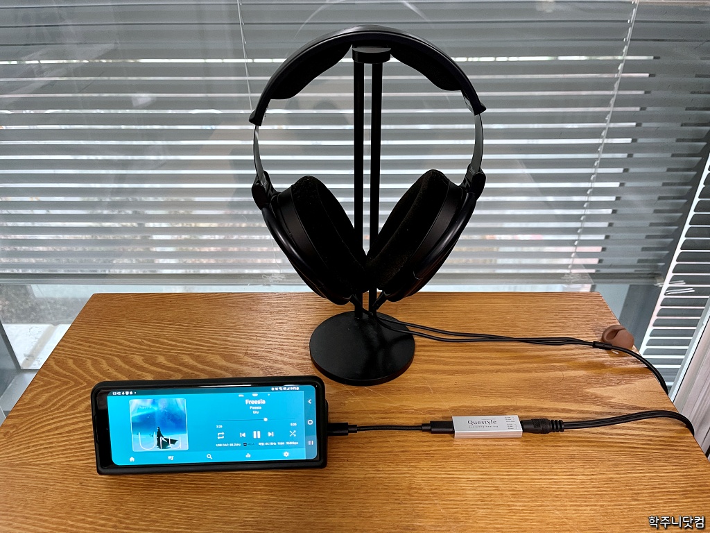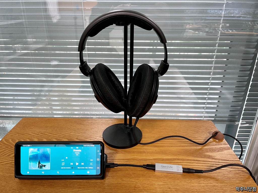 위의 모습은 젠하이저의 HD6XX(젠하이저의 HD650을 드롭닷컴에서 커스터마이징해서 저렴하게 만든 해드폰)를 M12에 연결한 모습이다. 앞서 보여준 해드폰들과 달리 HD6XX는 내 것은 아니고 지인이 사용하고 있는 제품인데 가끔 빌려서 듣곤 한다. 당연히 M12에도 물려서 들어봤다.