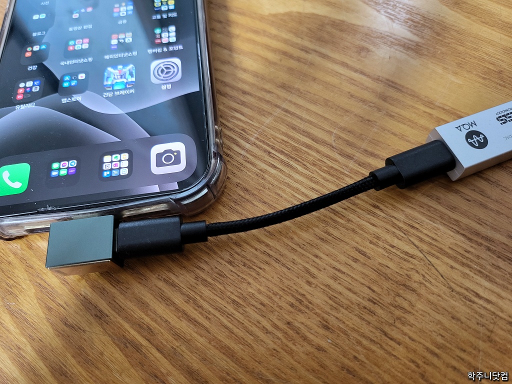 앞서 라이트닝 to USB-C 케이블을 이용하면 아이폰에서도 사용할 수 있다고 했는데(실제로 그렇게 사용하는 분들이 주변에 있다) 내 경우 라이트닝 to USB-C 젠더를 이용해서 USB-C to USB-C 케이블을 연결해서 아이폰을 통해서도 음악을 듣는다.