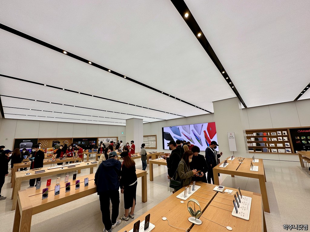 그러는 와중에 최근에 여의도 IFC몰 근처에 외근을 나갈 일이 있어서 갔다가 모처럼 한번 방문해볼까 싶어서 가봤다. 여전히 예약으로만 받는지도 궁금하기도 했고 말이다. 다행히 예약제로만 운영하던 시기는 지났고 누구나 다 방문해서 안에 있는 애플 디바이스들을 볼 수 있는 서비스로 바뀌었다.
