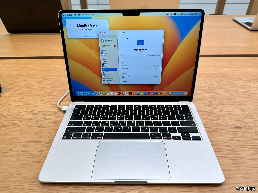 뭐 위의 사양을 보면 그냥 기본 맥북에어에 칩셋만 M1에서 M2로 변경한 것 같다. OS는 당연히 이번에 공개된 macOS 벤추라지만 말이다.