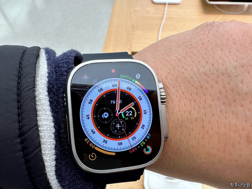 이후에 프리스비든 A#이든 애플 프리미엄 리셀러 매장에서 애플워치를 볼 떄마다 44mm, 45mm를 착용해보곤 했는데 역시나 크다는 느낌이 강했다. 그래서 애플워치 울트라의 49mm는 어마무시하게 크지 않을까 싶었다.