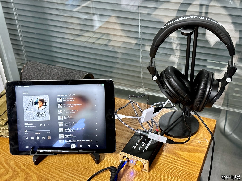 해드폰 엠프에는 오디오테크니카의 ATH-M50x를 물려서 듣고 있다.