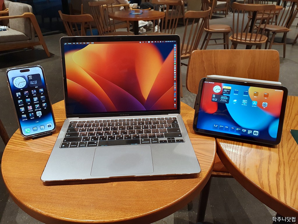 하지만 아이패드 미니 6를 구입한 후 확실히 맥북에어 M1과 역할을 구분해서 사용하고 있다. 물론 아이폰14 프로맥스와의 역할 구분도 하고 있기도 하고 말이다.
