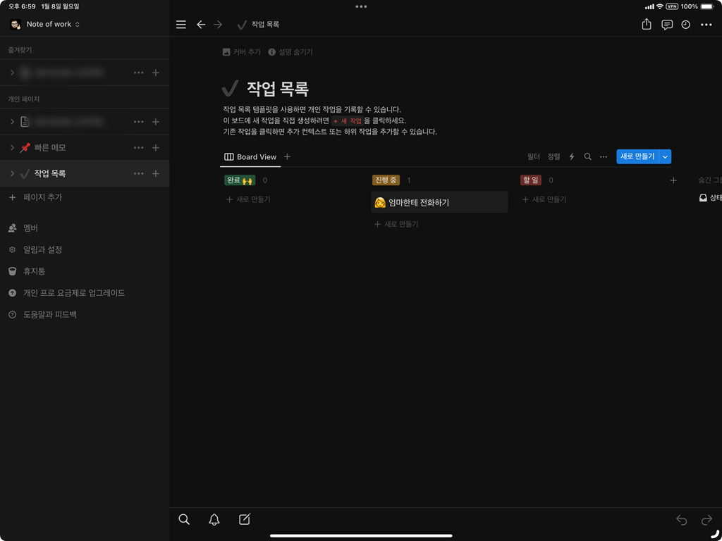 개인적으로 많이 사용하는 앱은 노션이다. 이전에는 에버노트를 사용했는데 에버노트가 점점 기능이 무거워지면서, 또 무료 버전에 대한 지원이 확 줄어들면서 매리트가 많이 사라진지라 2년전부터 노션으로 갈아타서 쓰고 있다.