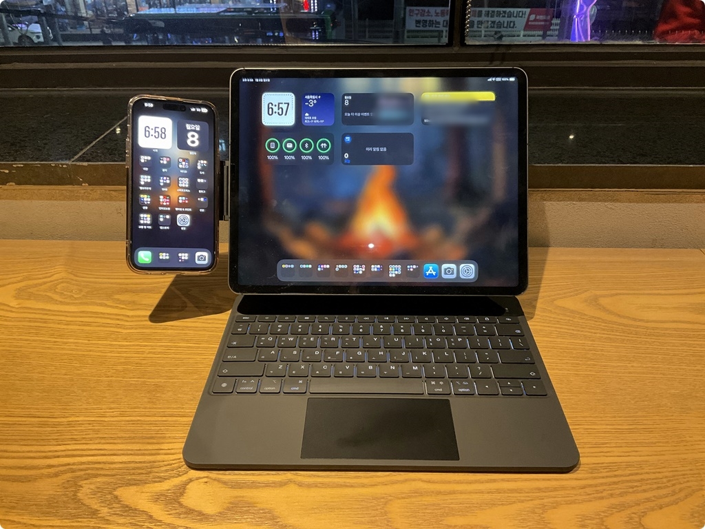 매직키보드와 애플팬슬이 보이는데 정품은 아니고 둘 다 알리익스프레스에서 산 중국산 짝퉁 매직키보드와 애플팬슬로 정품 대비 가격이 절반 이하의 가격으로 샀다. 짝퉁 매직키보드는 8만원대고 짝퉁 애플팬슬은 3만원대라 정품대비 거의 30% 수준의 가격으로 비슷한 기능 및 성능을 보여준다.
