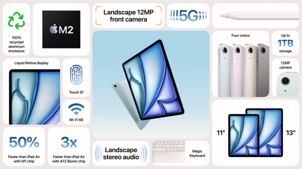 애플 이벤트는 먼저 새로운 아이패드 에어 시리즈를 공개하고 그 다음에 새로운 아이패드 프로 시리즈를 언급했기 때문에 여기서도 그 순서대로 하려고 한다.iPad Air