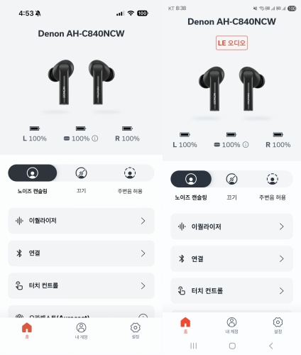 안드로이드 제품을 사용하는 경우는 어떨까? LE 오디오를 사용하는 데논 840 이어폰과 그렇지 않은 무선 이어폰을 비교한다면 당연히 같은 비트레이트에서 상대적으로 더 높은 데이터를 제공하는 데논 840 이어폰이 좋다.