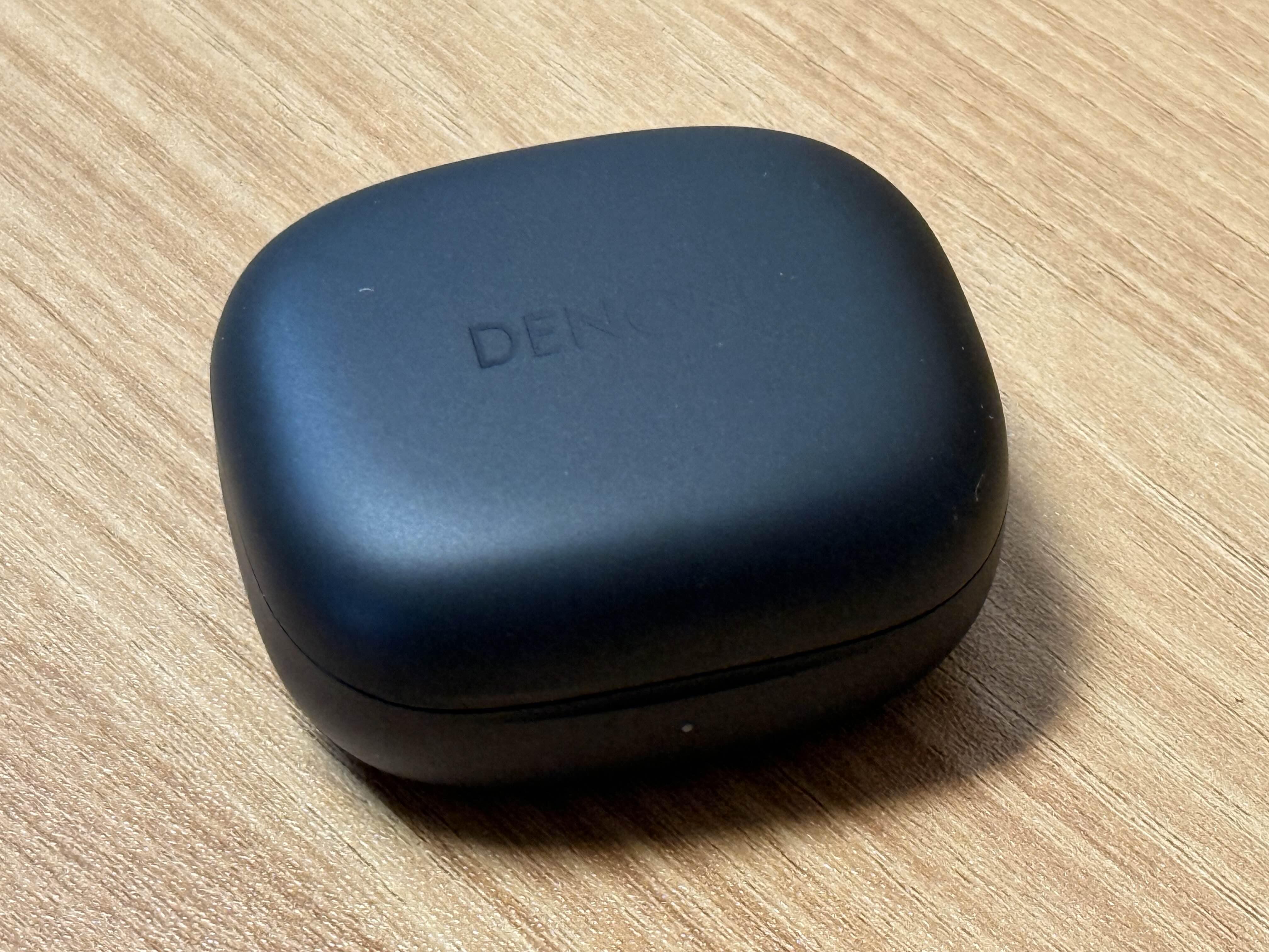 일단 충전케이스는 고급스럽게 무광 블랙 색상에 부드럽게 느껴질 수 있는 재질로 되어 있다. 데논이라는 브랜드가 양갹으로 박혀있는데 이것은 유광이어서 빛이 비추면 이쁘게 보인다. 뒷쪽에는 USB 충전 포트와 페어링 버튼이 있다. 그리고 무선 충전 역시 지원한다.