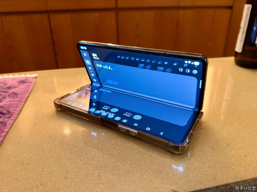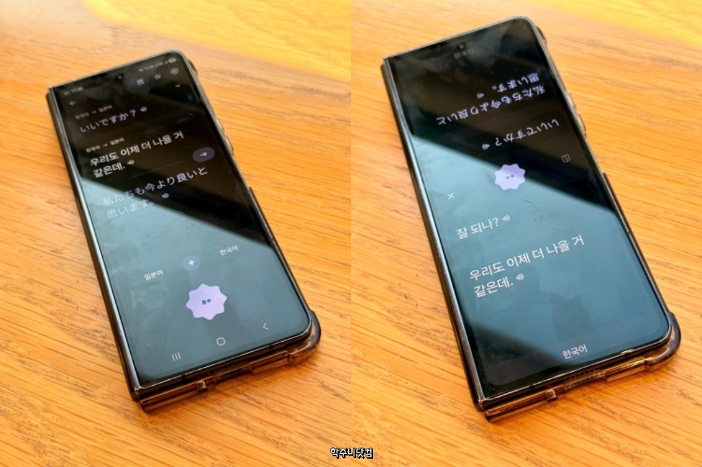 마쓰야마에서 제대로 사용한 방법은 갤럭시Z폴드5를 이용한 방법이었다. 이전에 갤럭시Z플립을 광고할 때 통역 관련 광고가 있었는데 플립을 반쯤 펼쳐서 내가 말하는 내용을 상대방의 언어로 플립의 커버 디스플레이에 보이게 한다는 것이다. 보고 꽤나 흥미로웠는데 플립이 된다면 폴드는 당연히 될 것이라 생각을 했다.